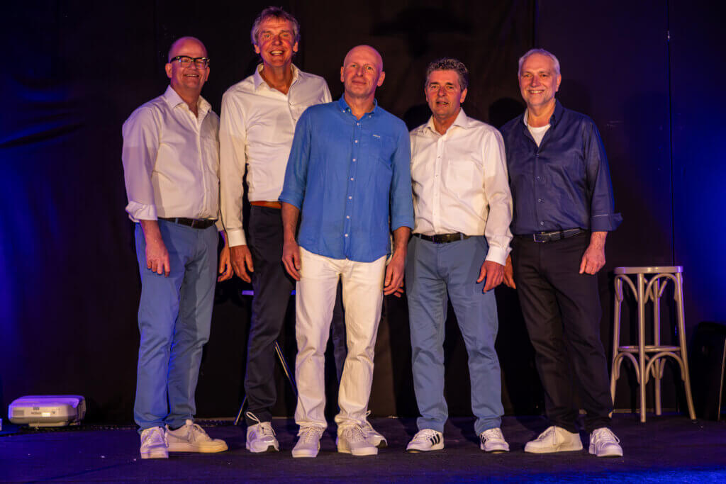 Wichger Helmholt, Alle Jan Heida, Albert Mulder, Pieter de Backker en Bart Bakker